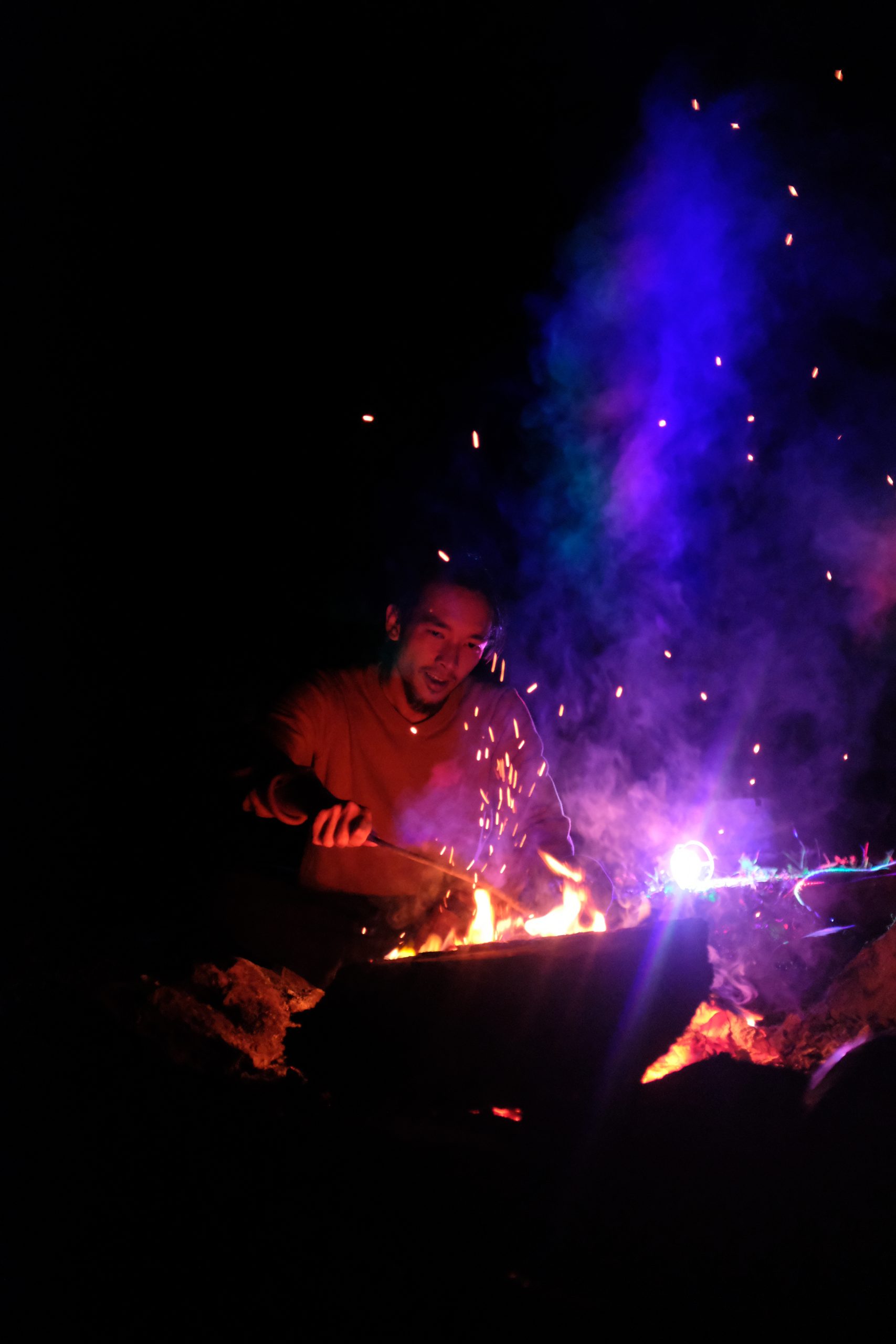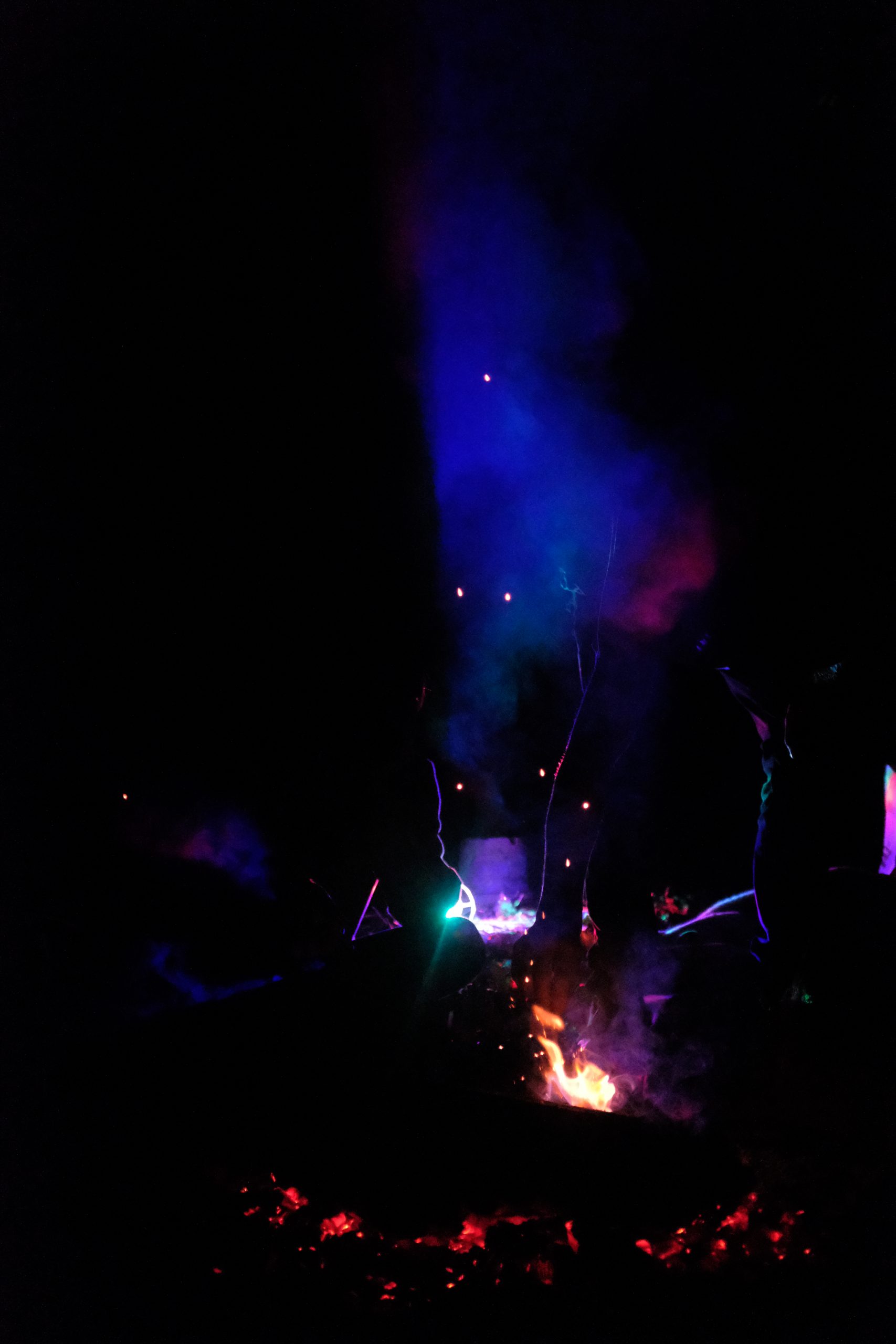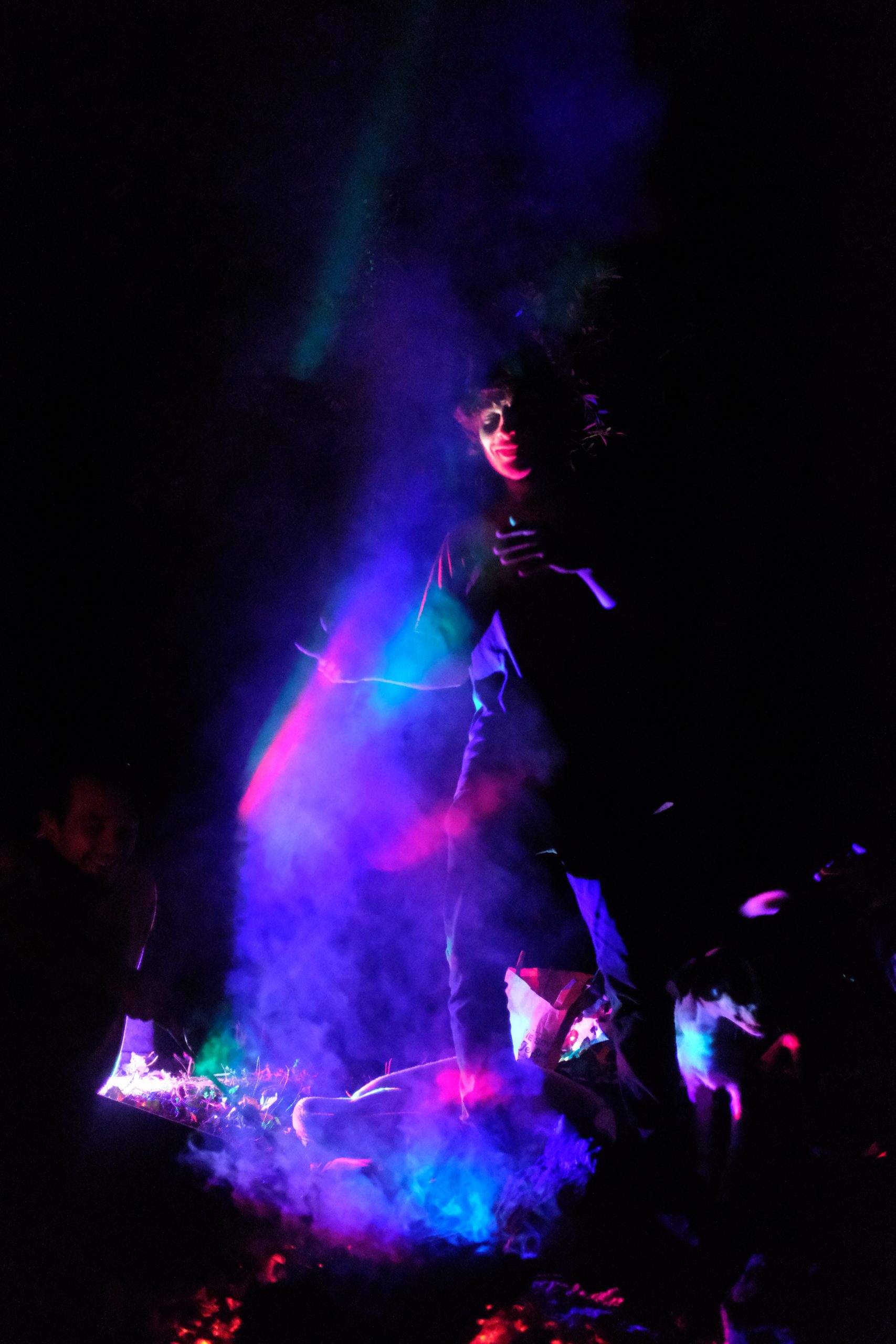 Ça commence par la brise alléchante de légumes marinés sur une grille improbable, posée sur des pierres soigneusement disposées en cercle, au milieu d’un terrain au fond du Diois. Un joyeux barbecue avait regroupé une troupe de belles personnes. Les plus affamé.e.s avaient pris les premières places, assis.es sur le sol ou sur un vieux transat usé. Courgettes, aubergines, poivrons rouges trempés dans une marinade d’huile aux herbes, ail et citron, faite à l’improviste avec les moyens du bord quelques heures plus tôt, quand le soleil brûlait encore même à la fin du mois de septembre. Du vin, aussi. Des champignons fourrés au tartare. Des rires quand il fallait croquer dedans alors qu’ils se tenaient seulement en équilibre au bout d’une cuillère toute aussi improbable que la grille. Le tout visité par une épaisse fumée odorante qui passait, selon l’humeur du vent, sur nos visages. Nos jambes arrivaient même à nous soulever quelques instants pour l’éviter quand elle avait décidé de prolonger sa visite. Et puis le temps était passé et, des idées – plus ou moins sages – en entraînant d’autres, la fumée devint l’actrice principale du film de notre nuit. Transpercée par l’ambiance disco-punk-acoustique que créaient les lumières, la musique et l’hilarité générale. Elle nous maintenait dans cette ambiance en nous montrant toutes ses courbes et ses nuances. Elle embellissait chaque visage, contrastait toutes les ombres et épousait les lumières – dans une bulle de nuit noire qui enfermait la troupe de belles personnes, réchauffées par le Calcifer du terrain.