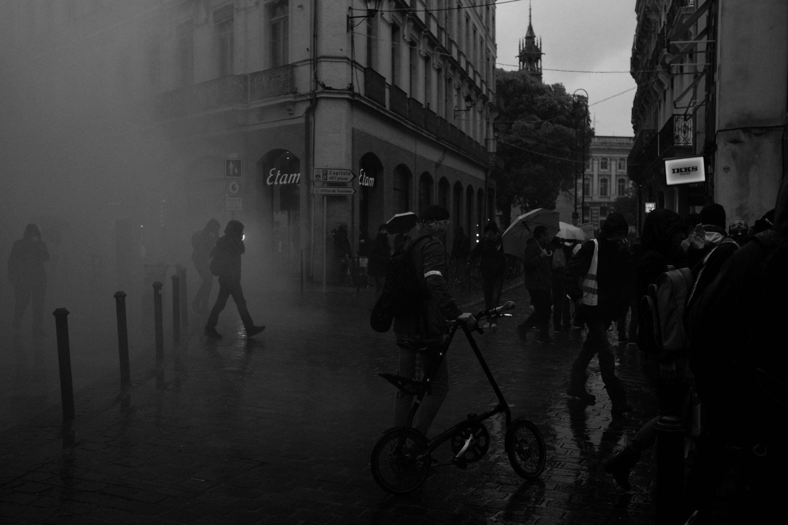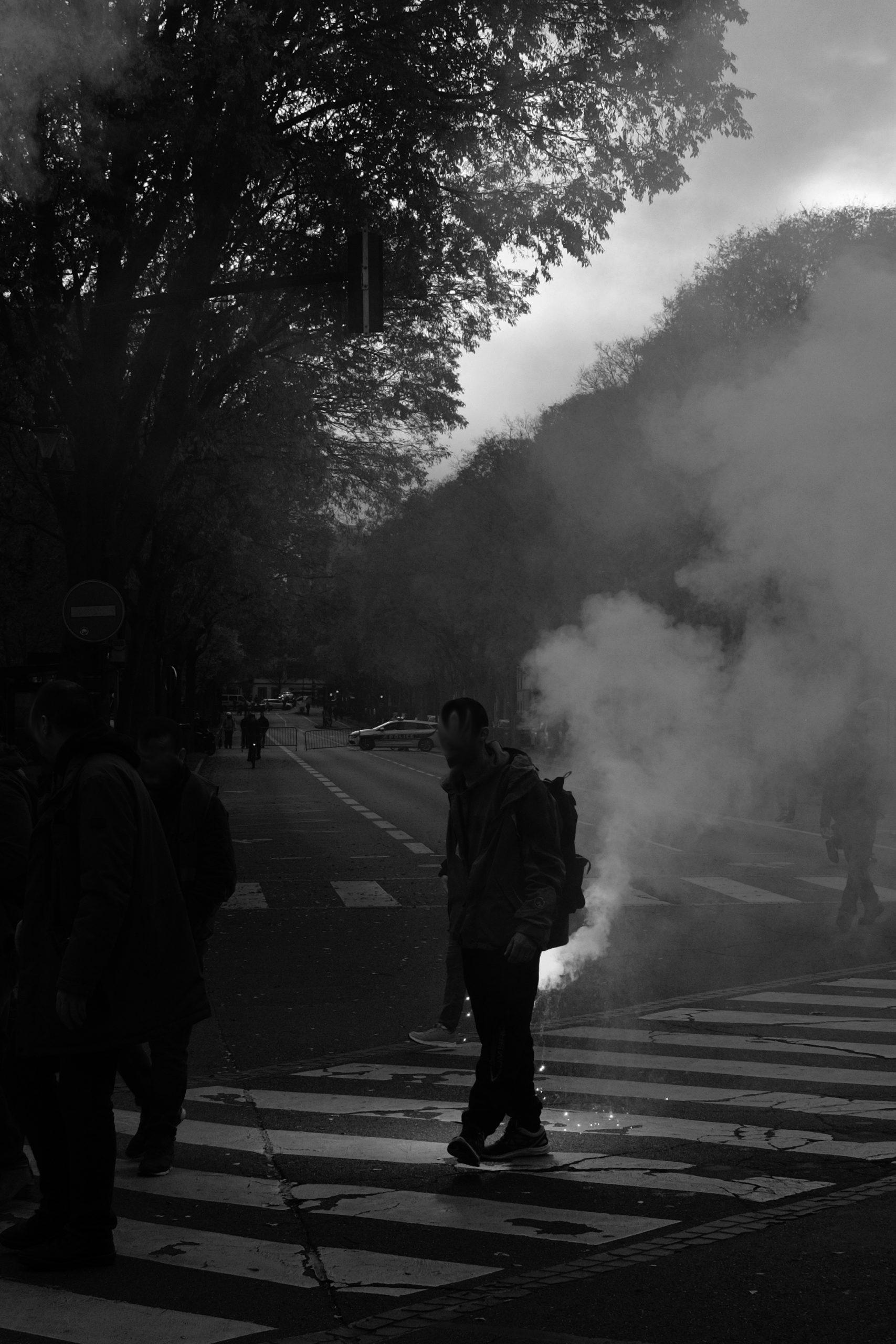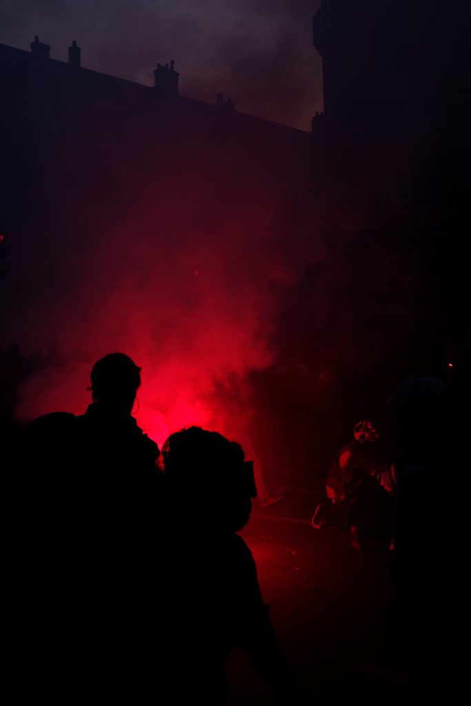 Voilà comment cette histoire de fumées se termine. Une errance fatiguée dans des rues désertées d’où sont vite parties toutes traces d’adrénaline et où seule l’odeur encore chaude des gazs lacrymogènes circule librement.