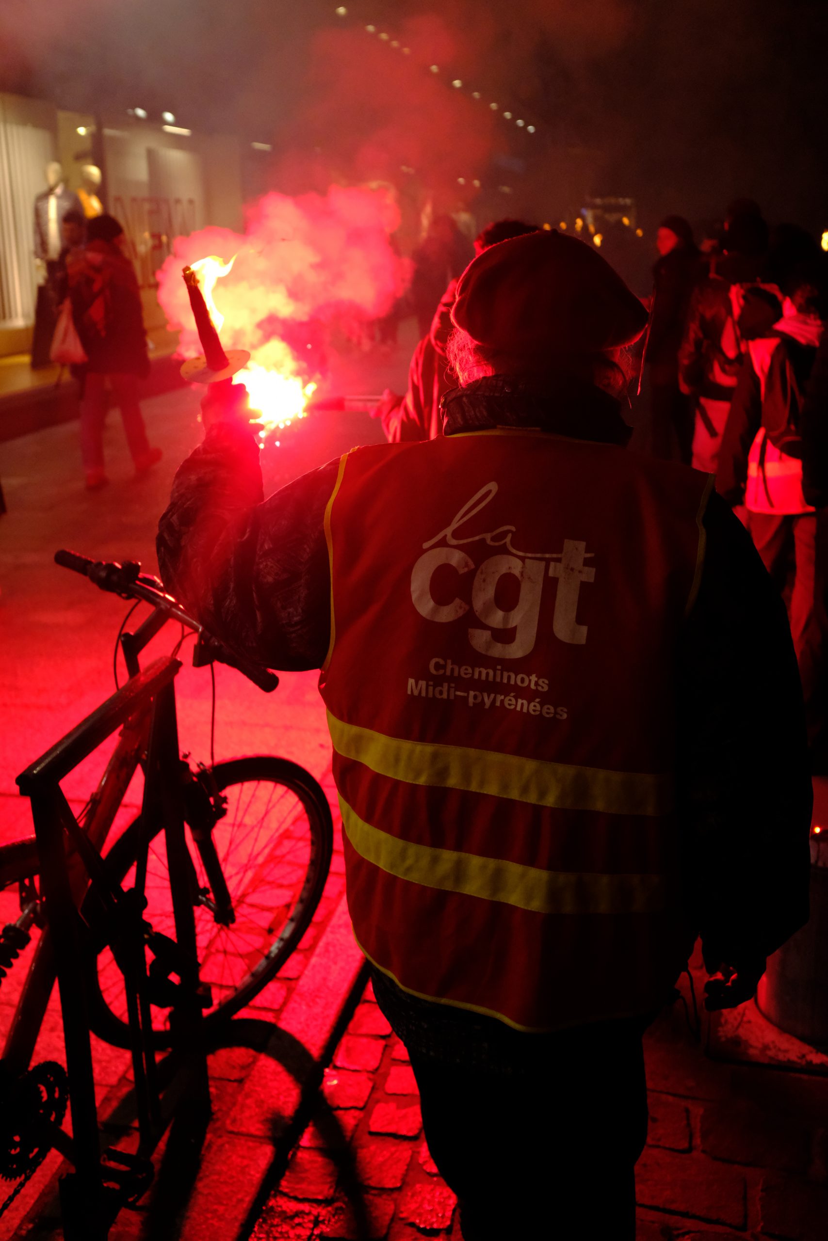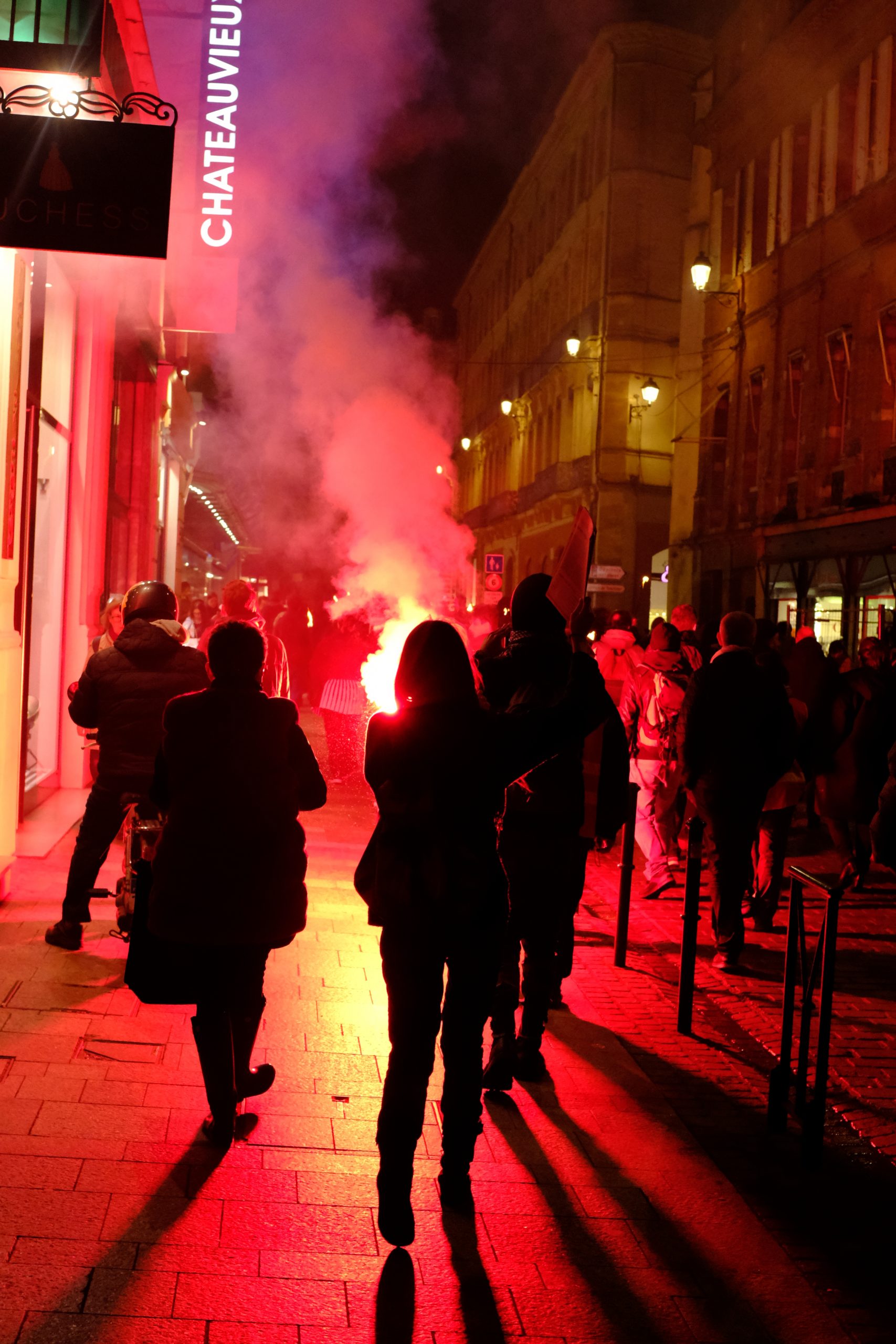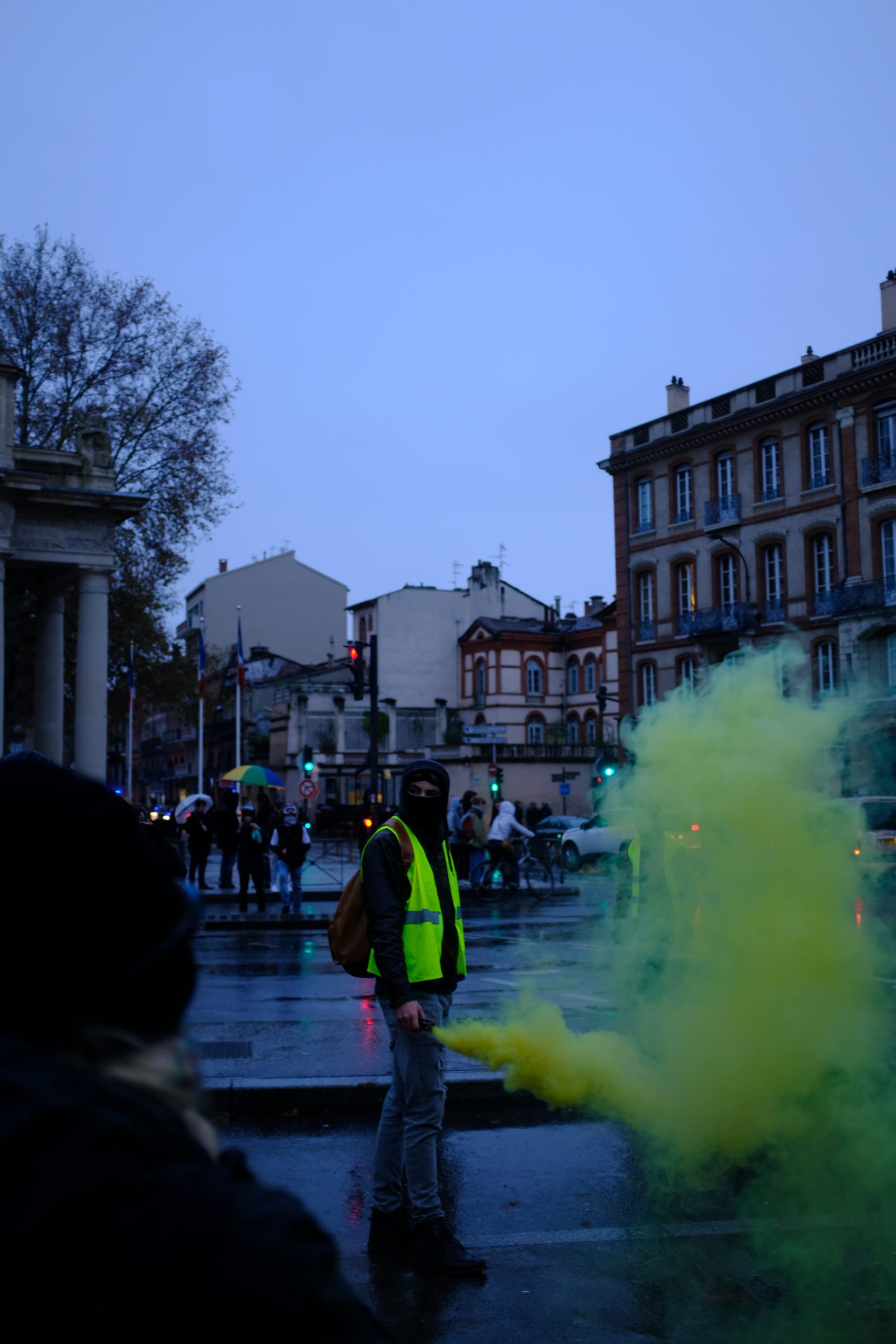 Cette histoire de fumées, encore haletante et larmoyante, s’épanouie maintenant dans les rues, les avenues et les boulevards de Toulouse. Les fumées d’une colère politique ont investi la ville rose et semblent s’y être installées durablement. En fait, elles se sont installées partout en France à tel point qu’elle commence à tomber, la vérité prenant le dessus sur des illusions qui elles seules maintenaient l’ordre de choses, la hiérarchie sociale. Les gens d’en haut nous ont gavé.e.s de ces illusions, ils nous ont gavé.e.s de pubs, gavé.e.s du pays des droits de l’homme, gavé.e.s de la dite démocratie et ses élections qui excusent tout, gavé.e.s de grands débats, de justice impartiale et indépendante, de violence légitime. Ils nous gavent encore et peut-être nous gaveront-ils toujours. Mais le grand spectacle d’illusionnisme du système, des dirigeants, du capitalisme touche à sa fin. Les spectateurs et spectatrices prennent conscience qu’iels devraient être sur la scène, que ce spectacle devrait être le leur, iels en sont les seul.e.s acteurs et actrices et cela implique de ne plus regarder bêtement les pantins du capital faire leur numéro. Alors les illusions qu’ils nous balancent encore en pleine gueule, tous les jours, par les paroles, les petites phrases, les images, elles ne font que nourrir une colère grandissante, une colère en perpétuelle mutation avec du dégoût, de la tristesse et de l’espoir. Elles ne font que nourrir le désir de vérité qui pèse bien plus lourd qu’elles et qui ouvre de plus en plus de consciences. Elles ne font qu’agrandir le trou noir qu’il y a entre la réalité de notre monde et la vision qu’ils en ont. Mieux, le trou noir qu’il y a entre la vision qu’ils nous donnaient de notre monde et la réalité que nous sommes en train de nous réapproprier. Et, souvent, nous le faisons en allant volontairement se perdre dans des nuages de fumées.